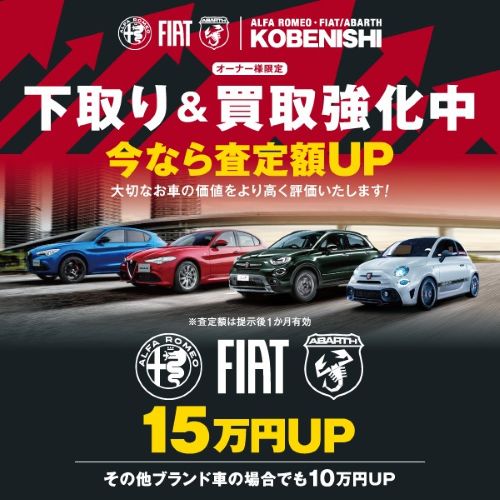 こんにちは。 アルファ ロメオ神戸西です★ 査定額UPキャンペーンのお知らせです! ▼オーナー様限定▼ ...